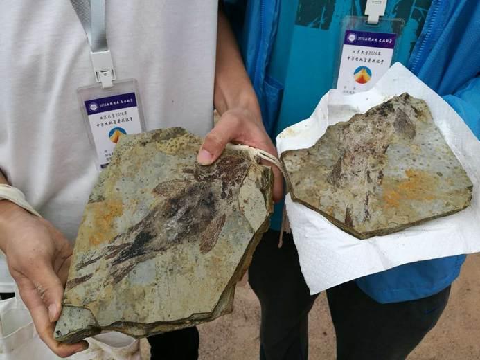 中午13:30,冒着蒙蒙細雨,同學們進入四合屯挖掘現場,開始自主挖掘化石。“狼鳍魚”,“東方葉肢介”,“三尾拟蜉蝣”……以這三類為代表的熱河生物群化石在同學們的努力下被頻頻發現,在不斷的驚喜中,同學們都體驗到了野外工作的魅力。結束時刻,享受着北票化石保護區為同學們精心準備的西瓜,同學們感受到的是滿滿的幸福。
