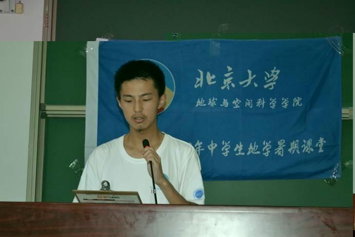 之後,暑期課堂學生代表朱冠宇同學進行了發言。他回顧了自己暑期課堂所經曆的點點滴滴,有收獲,有感動,引起了同學們的強烈共鳴。最後,他表示了對于代課老師和所有班主任的感謝,表達了對于北大地學的向往與為之努力的決心,這也是同學們的共同心聲!