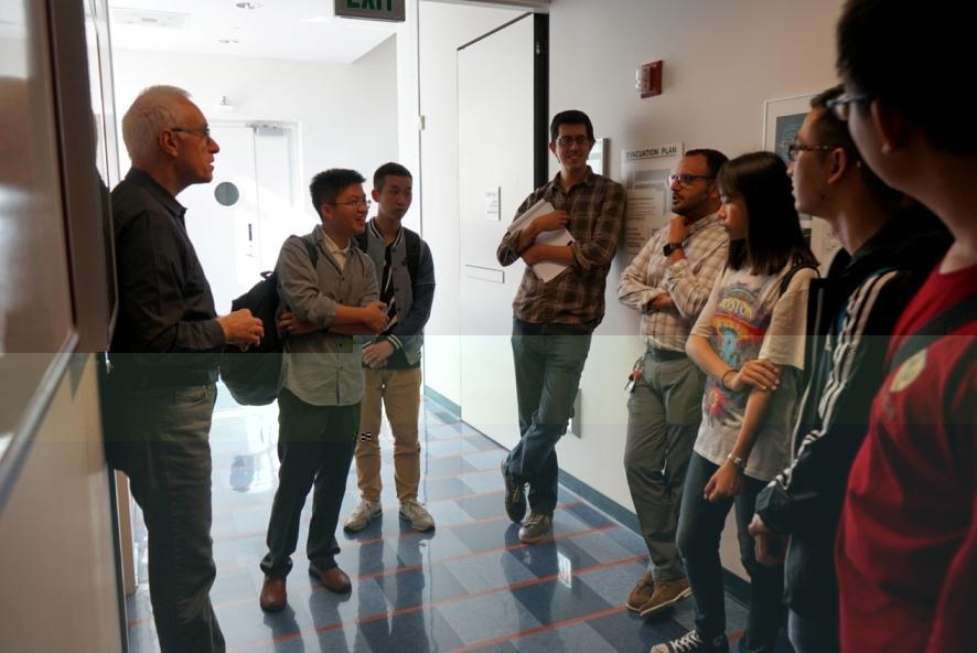 美國加州時間9月28日,經過一天的休整,地空學院2016級遊學隊伍空間科學與技術分隊的5名同學一大早便從駐地來到了加州大學伯克利分校的校園。在經曆了第一天對于校園的熟悉之後,同學們顯然已經将自己完全融入到了伯克利校園文化的生活之中。在校園乘坐Bear Transit抵達Space ScienceLaboratory,剛剛抵達就受到了空間實驗室George Parks和Thai Phan兩位老師的歡迎,與同學們在空間實驗室的門口簡單合影過後,便來到了研讨室進行了将近一個小時的短暫交流。同學們針對空間實驗數據傳輸的相關問題進行了詢問,也得到了兩位老師的耐心解答。