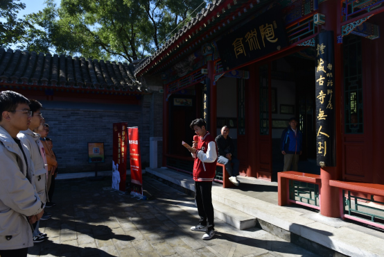 我十分高興能和同學們一起來到陶然亭參與紅色教育活動,在這裡,我們深入了解了高君宇烈士的生平事迹, 為他的革命精神所感動,“我願生如閃電之耀亮,我願死如彗星之迅忽”,高君宇同志的革命誓言将永遠地銘記在我們在場的每一位同學心中。 除此以外,我們還遊覽了慈悲庵與紅色報刊微展覽,這裡展示了毛澤東、周恩來、高君宇等革命先驅在陶然亭慈悲庵開展過革命活動和早期共産黨人參與創辦、編輯的進步刊物和發表的重要文章。這些泛黃的刊物,讓我們仿佛回到了那個波瀾壯闊的年代,使我們更好地銘記奮鬥曆程、擔當曆史使命、汲取前進力量!
